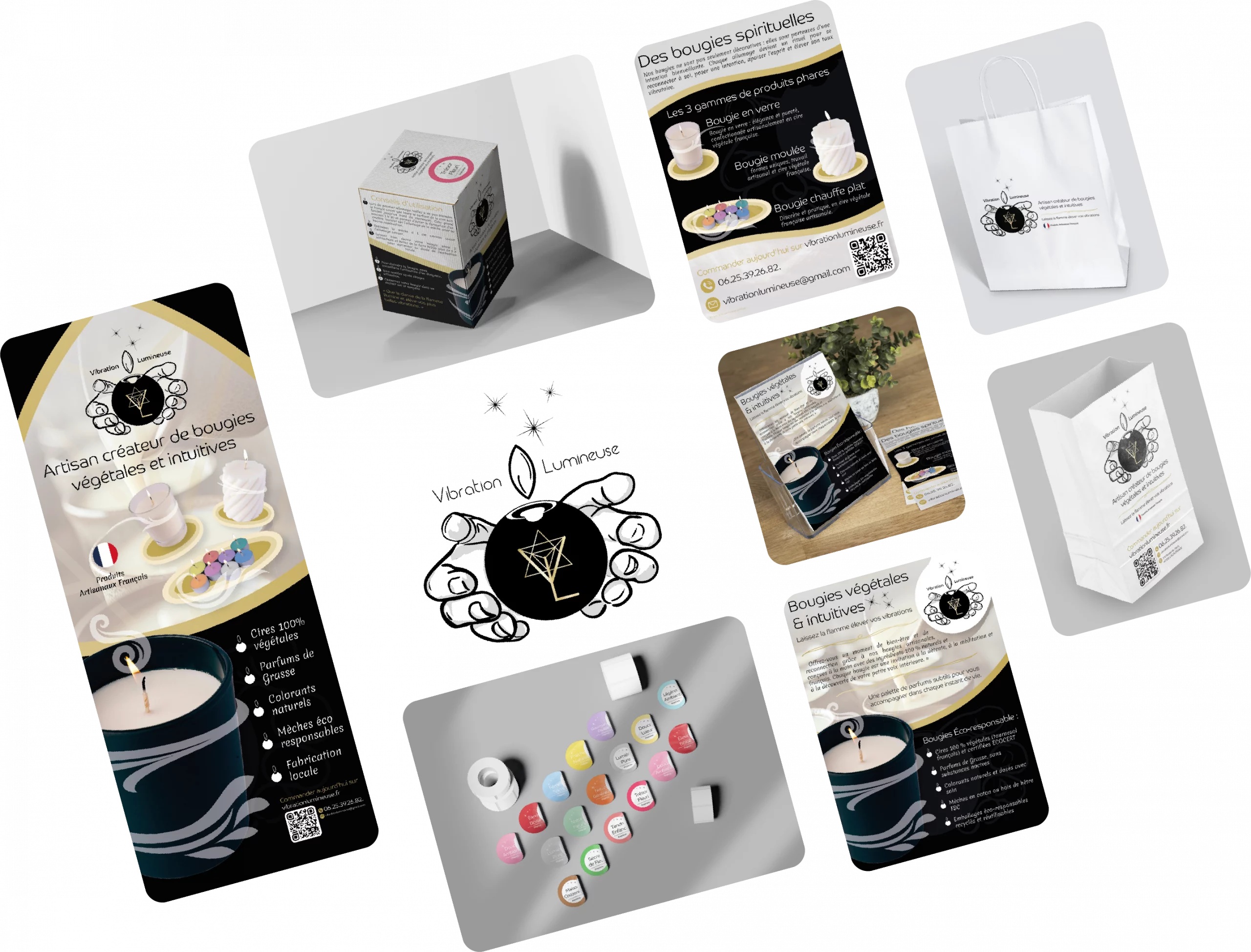 site web, réseaux sociaux, plaquettes, cartes de visite, packagings, etc.